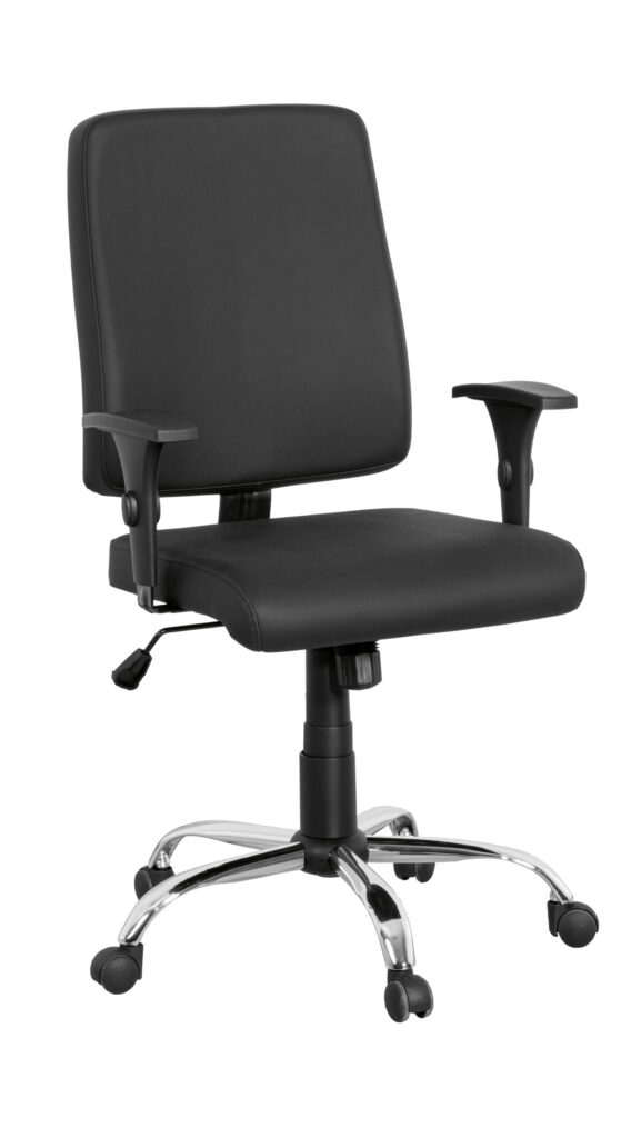 Encosto Médio, Giratória Base Cromada, Braço Regulável, com Relax